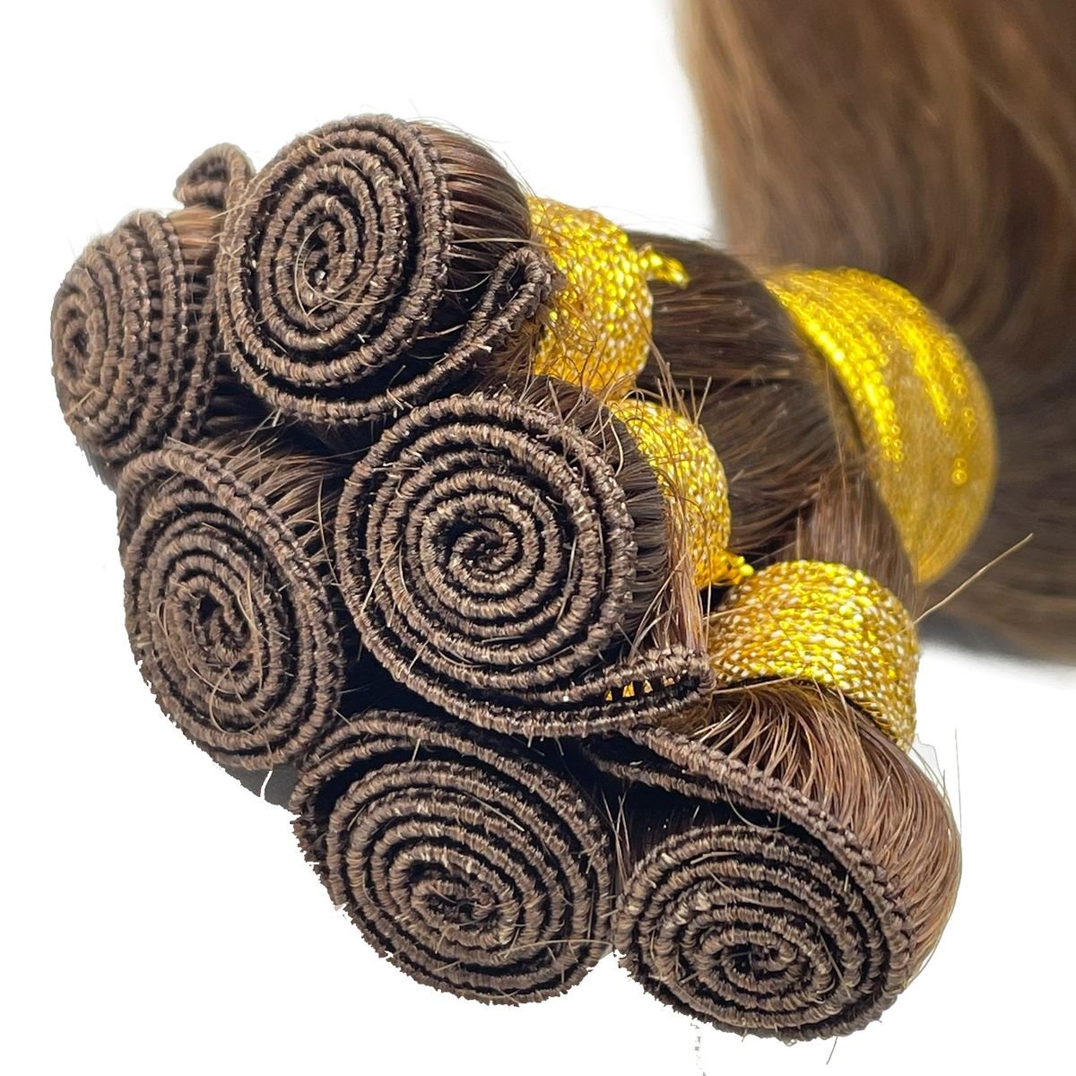 Made from 100% genuine Indian human hair, our Hand Tied Wefts maintain natural cuticle alignment, ensuring minimal tangling, long-lasting softness, and exceptional durability. These extensions blend effortlessly with natural hair and can be styled, colored, and heat-treated just like your own hair.